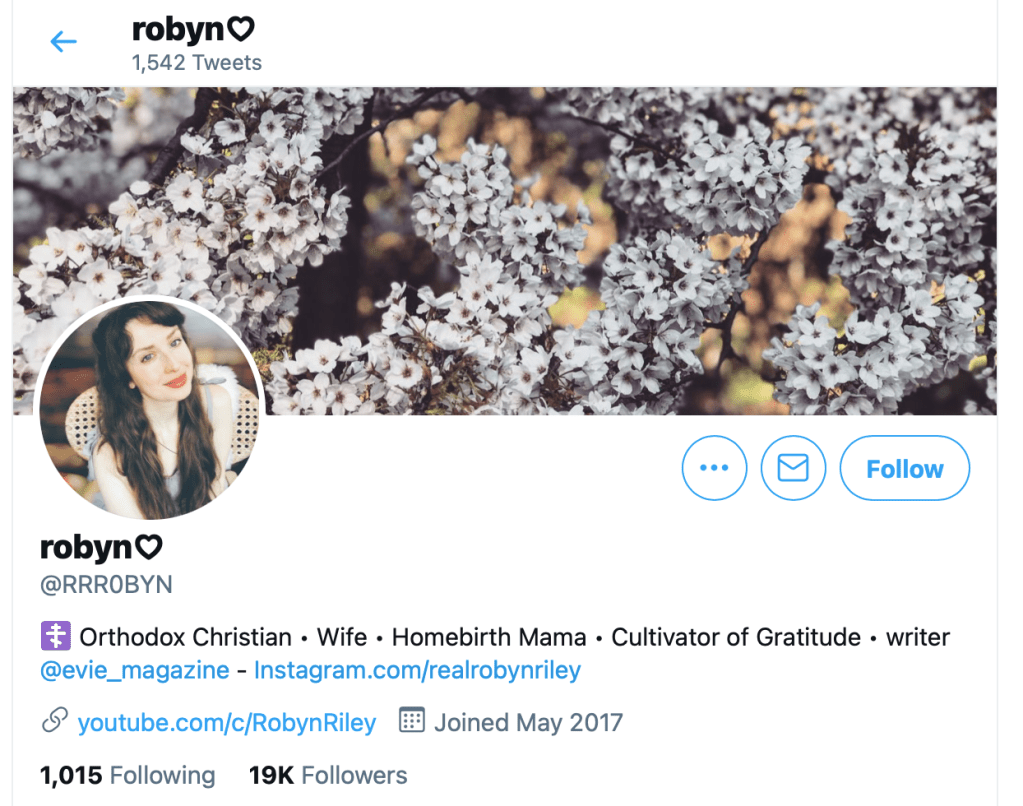 So, I am mostly speaking again to young women (under 23) and girls, who need some good examples to follow and positive influences. I like Robyn Riley, who we have seen earlier on YT. She has a worthwhile Twitter feed, which is here.