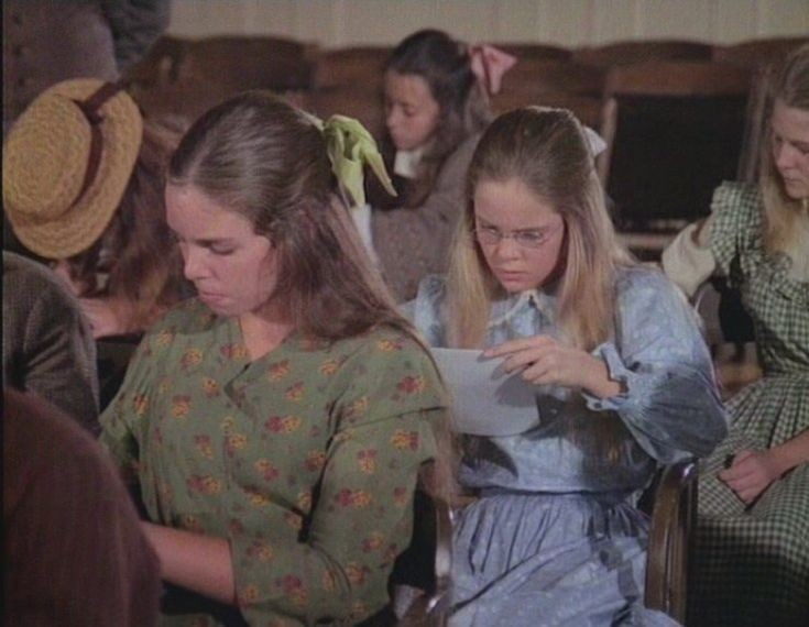 A still from the TV show Little House on the Prairie, showing a one-room schoolhouse in the Dakota Territory, during the 1880s.