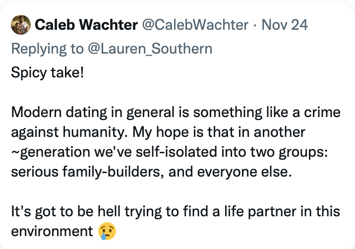 A man can form a “tribe of one.” He can, and today I think should, state all the expectations of his “tribe,” which is basically himself, for now. The woman that he meets will not necessarily already be conforming to these guidelines. But, she should be friendly to the idea, and willing to participate, much like a new employee at a corporation. I would state that I prioritize a woman that stays at home with the children, and homeschools. I would state how many children I would like (three or more), and in what timeframe (soon). I would state our political stance (some flavor of conservative), and related views (no rainbow shit, no vaccines). I would state some expectations (always look good, especially after you have children; keep a beautiful house; become a good cook). I would probably give a woman some books, like Fascinating Womanhood or Created to Be His Helpmeet, and see what her reaction is. This is not something that you do on the first date, of course. But, if you are at all serious about marriage, then I would do this.