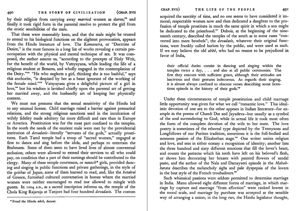 A description of marriage and family life in India, from the ancient era to the early 20th century. From the Story of Civilization (vol 1), by Will Durant.