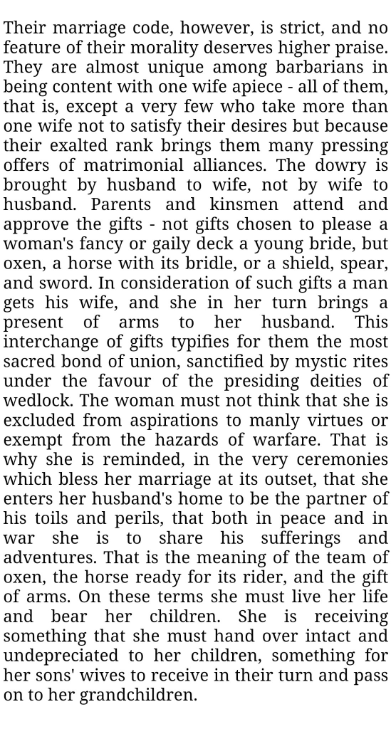 German Women Posted byproprietorOctober 6, 2023Posted inUncategorized From Germania, 98 AD, by Roman historian Tacitus. Share this: Click to share on X (Opens in new window) X Click to share on Facebook (Opens in new window) Facebook Like Loading... Related Published by proprietor Happily married, with children. View more posts