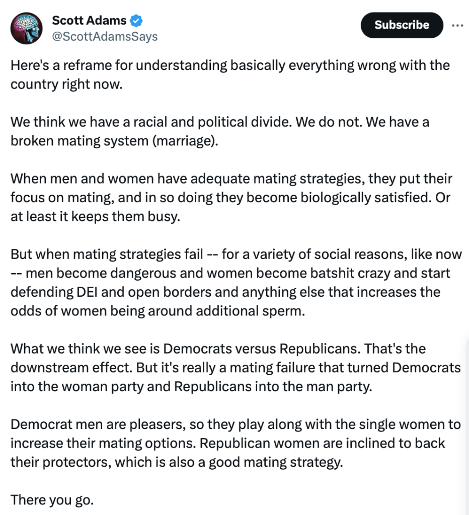 In the past two weeks or so, there has been a burst of interest in the divide between Leftist females and — although hardly conservative — a lot Less Leftist males.