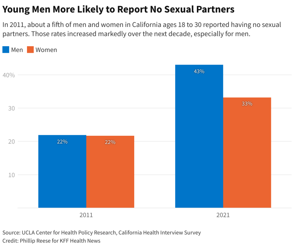 43% of Men — including married and non-single — between 18-30 reported no sex partners in 2021.